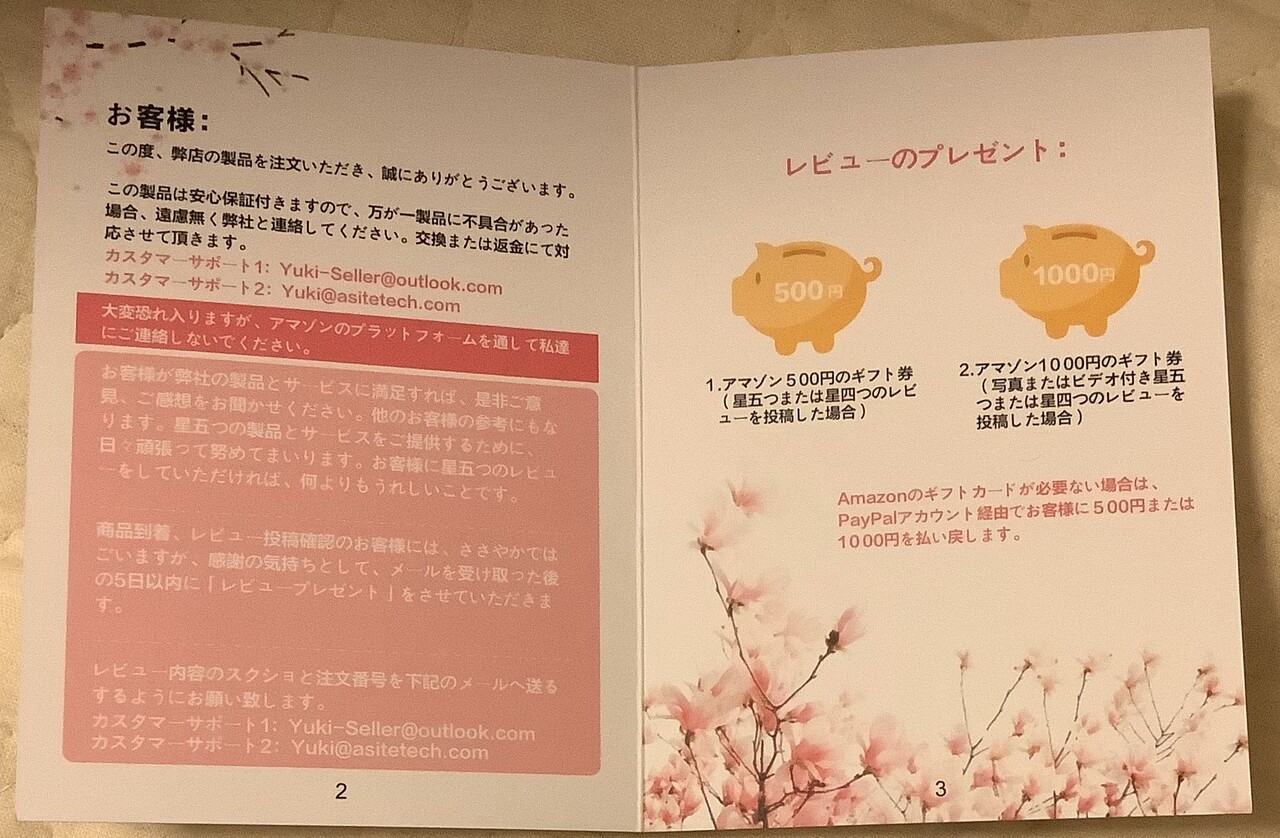 中華製買うとレビューしてくれたら金やるみたいなの毎回入ってるけどホンマにもらえるんか?