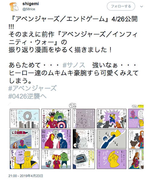 【漫画】「アナ雪」に続き「アベンジャーズ」もステマ発覚www 2019年12月06日 カテゴリ:ニュース・雑談 1: 2019/12/06(金) 13:25:03.12 ID:UjRaR+zjM 21時きっかりに投稿 アナ雪のステマ漫画家もいるため言い逃れできない模様 【【漫画】「アナ雪」に続き「アベンジャーズ」もステマ発覚www 】の続きを読む タグ :#Twitter#ステマ#アベンジャーズ
